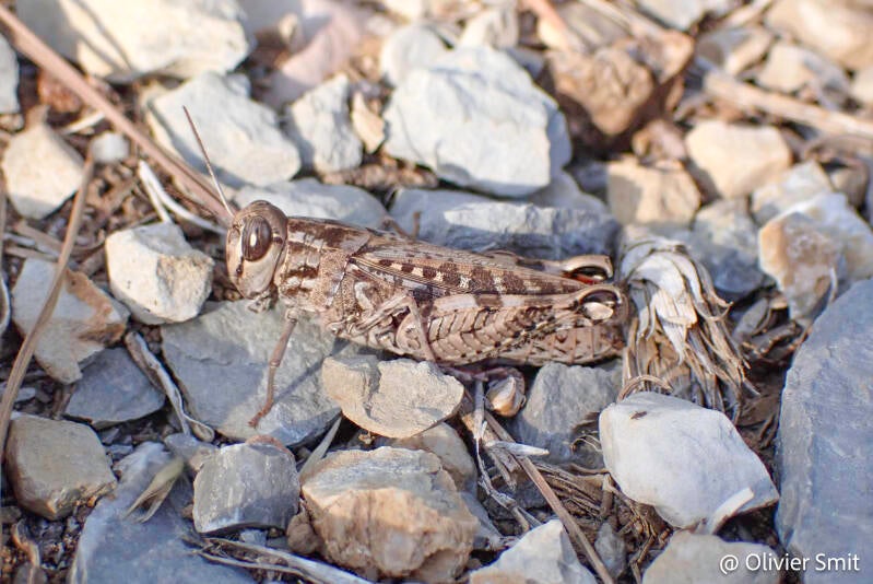 Woestijnkiezelsprinkhaan (Sphingonotus rubescens)